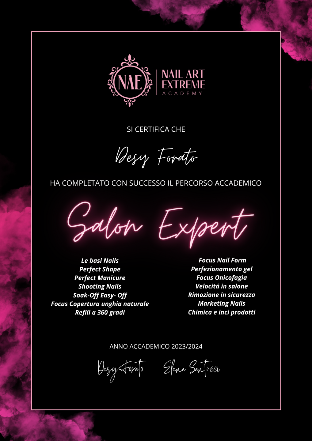 Centinaia di ragazze in passato volevano abbandonare questo lavoro, dopo il Salon Expert sono diventate delle vere professioniste con l'agenda piena. Desy ti farà eccellere condividendoti tutto il suo sapere.